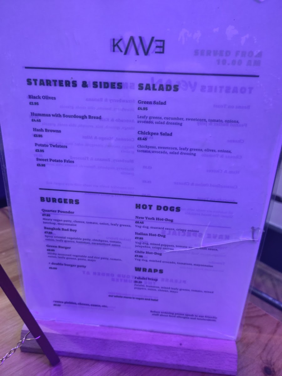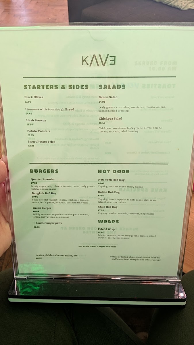 Welcome to Kave Cafe, a cozy gem nestled in London at 1 Goldhawk Rd. This delightful cafe is celebrated for its inviting atmosphere and exceptional menu that caters to all tastes. Start your experience with a selection of starters and sides like the rich hummus with sourdough bread or crispy sweet potato fries.